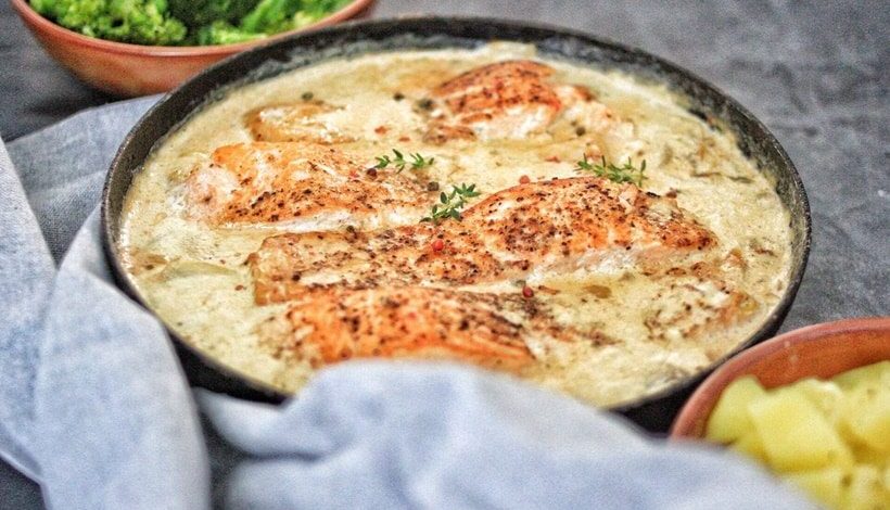 Tuscan sauce is creamy, aromatic with a wonderful garlic flavor and goes perfectly with salmon. And, as well as delicious, it takes just 30 minutes to prepare, and while it’s cooking, there’s time to steam some broccoli and potatoes for a perfect side dish.
